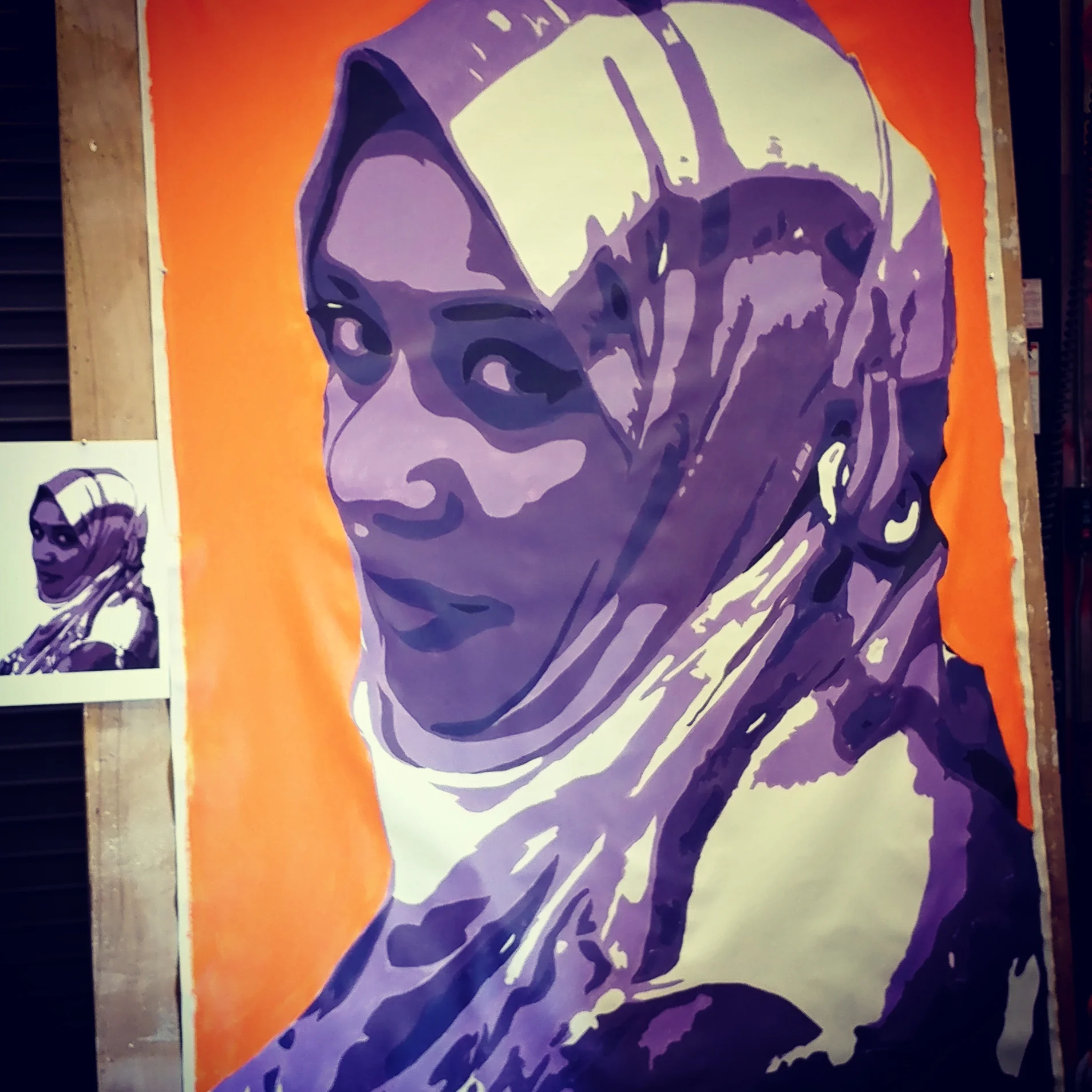 5 foot by 8 foot, the backdrops for Oakland Tech’s dance performance are a collaborative piece between ArtEsteem students at the high school and the Tech Techies. The pieces feature portraits of women of color through a high contrast, posterized color motif that has been used to create a dynamic and striking presence on stage. The pieces are hung at either side of the stage and are moved on and off the stage with a pulley, smoothly and ethereally interacting with the dancers.